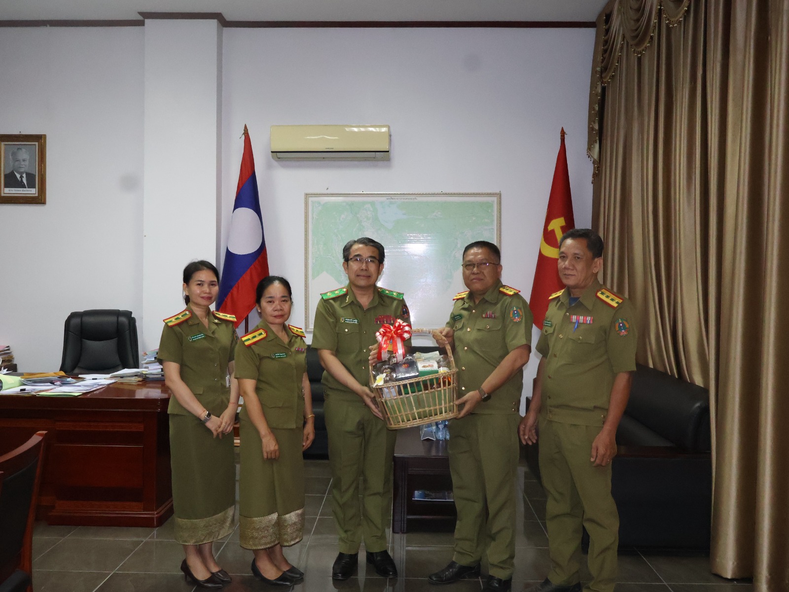ໃນວັນທີ 8 ເມສາ 2026 ທ່ານ ພັອ ທອງຂັນ ສີສຸພັນທອງ ຄະນະພັກກົມ, ຮອງກົມຄຸ້ມຄອງສຳມະໂນຄົວ ແລະ ກໍ່ສ້າງຮາກຖານ ພ້ອມດ້ວຍຄະນະ ໄດ້ນຳເອົາກະຕ່າຂອງຂວັນ ເຂົ້າອວຍພອນ, ທ່ານ ພົຕ ກອງສະຫວັດ ບຸນລ້ຽງ ຮອງລັດຖະມົນຕີກະຊວງປ້ອງກັນຄວາມສະຫງົບ ຫົວໜ້າກົມໃຫຍ່ຕຳຫຼວດ ເນື່ອງໃນໂອກາດວັນສ້າງຕັ້ງ ກຳລັງປ້ອງກັນຄວາມສະຫງົບ ຄົບຮອບ 65 ປີ ( 5 ເມສາ 1961 - 5 ເມສາ 2026 ).