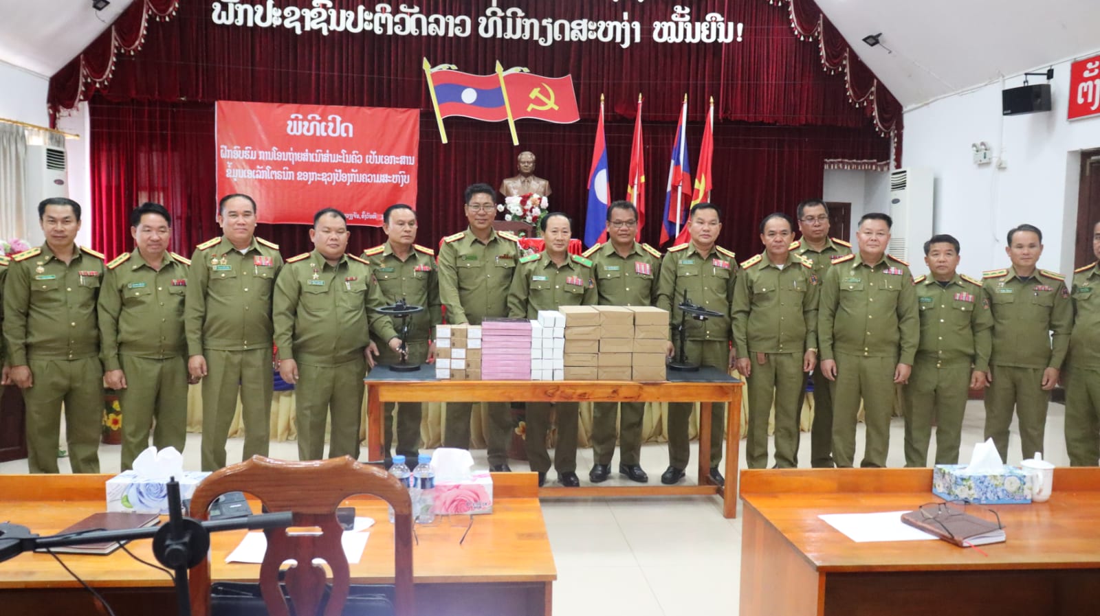ໃນພິທີທ່ານ ພັທ ນາງ ເຂັມຄຳ ໄຊຍະເພັດ ຄະນະພັກກົມ ຫົວໜ້າພະແນກການເມືອງ ໄດ້ຂື້ນຜ່ານຂໍ້ຕົກລົງຂອງລັດຖະມົນຕີກະຊວງປ້ອງກັນຄວາມສະຫງົບ ສະບັບເລກທີ 2989/ປກສ ລົງວັນທີ 24 ຕຸລາ 2024 ວ່າດ້ວຍການອະນຸມັດເປີດຝຶກອົບຮົມການໂອນຖ່າຍສໍາເນົາ ສໍາມະໂນຄົວ ເປັນເອກະສານເອເລັກໂຕຣນິກ,