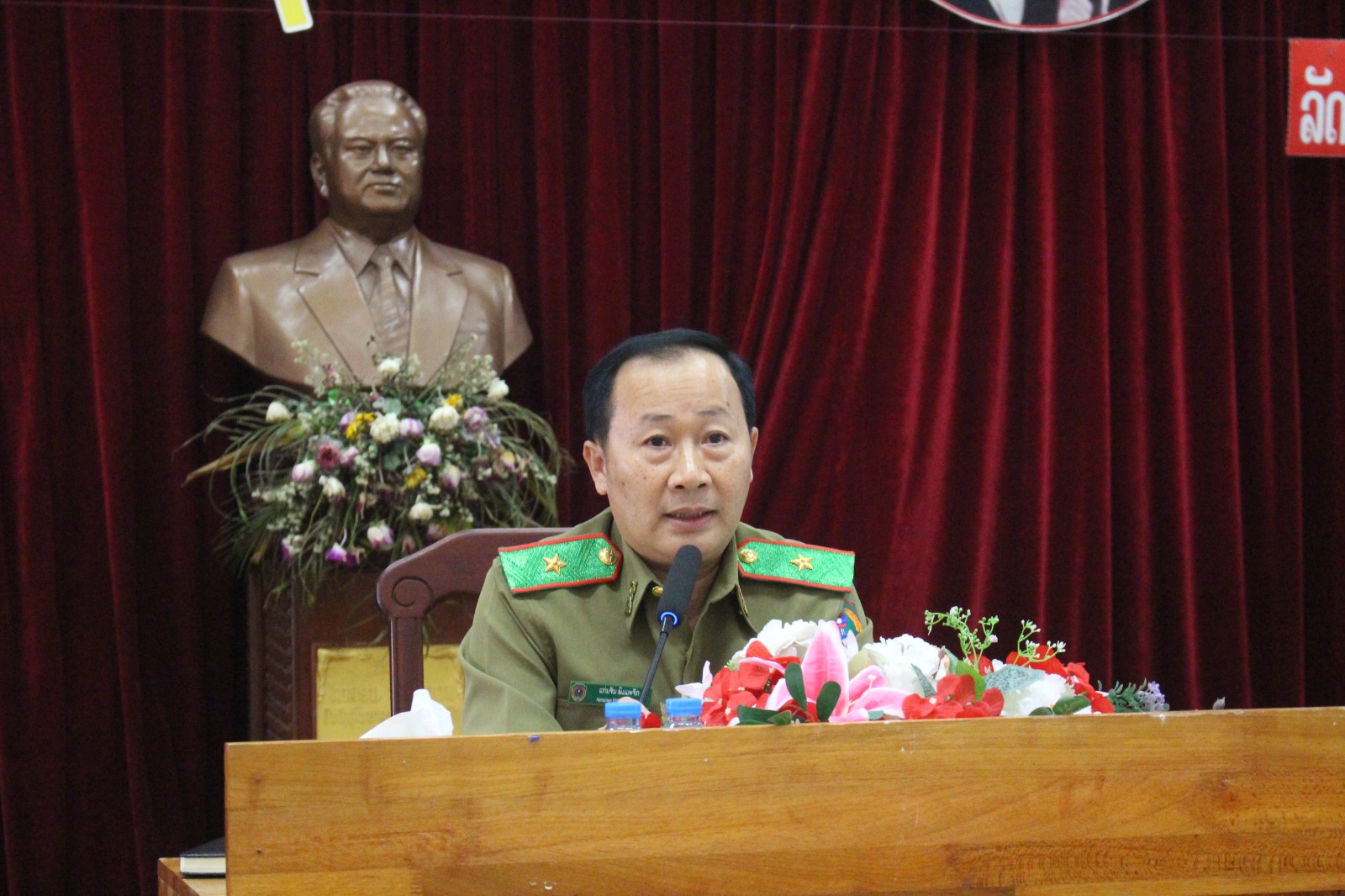 ທ່ານ ພົຈວ ແກ່ນຈັນ ພົມມະຈັກ ຫົວໜ້າກົມຄຸ້ມຄອງສຳມະໂນຄົວ ແລະ ກໍ່ສ້າງຮາກຖານ ໄດ້ເປັນກຽດໂອ້ລົມໃຫ້ທິດຊີ້ນຳ ແລະ ໃຫ້ກຽດມອບໃບຢັ້ງຢືນການລົງກໍ່ສ້າງຮາກຖານການເມືອງ ໃຫ້ພະນັກງານທີ່ໄດ້ສຳເລັດການລົງກໍ່ສ້າງຮາກຖານ ໃນພິທີປິດຝຶກອົບຮົມວຽກງານກໍ່ສ້າງຮາກຖານ