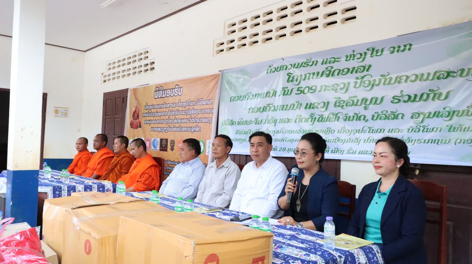 ໂດຍເຄື່ອງນຳມາມອບໃນຄັ້ງນີ້ປະກອບມີເຄື່ອງອຸປະໂພກ ແລະ ບໍລິໂພກ ຈຳນວນ, ອຸປະກອນການຮຽນ, ເຄື່ອງໃຊ້ໄຟຟ້າ ແລະ ເຄື່ອງໃຊ້ທີ່ຈຳເປັນໃນຊີວິດປະຈຳວັນ ລວມມູນຄ່າ 235.000.000 ລ້ານກີບ ເປັນຕົວແທນກ່າວມອບໂດຍ ທ່ານ ດຣ ນາງ ຄໍາປະສິດ ພົມມະຈັກ, ກ່າວຮັບໂດຍທ່ານ ຈຸນດາ ຄຳບຸນມີ ເຈົ້າເມືອງເມືອງຮົ່ມ ພ້ອມນີ້ກໍ່ຍັງໄດ້ມອບເຄື່ອງໃຫ້ພະນັກງານກອງກໍ່ສ້າງຮາກຖານ 920 ແລະ ກອງ 915 ທີ່ປະຕິບັດໜ້າທີ່ ກໍ່ສ້າງຮາກຖານການເມືອງຢູ່ແຂວງໄຊສົມບູນຕື່ມອີກ.