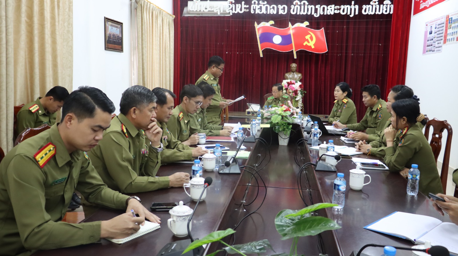 ໃນຕອນທ້າຍຂອງພິທີ, ທ່ານ ພົຈວ ແກ່ນຈັນ ພົມມະຈັກ ຫົວໜ້າກົມຄຸ້ມຄອງສໍາມະໂນຄົວ ແລະ ກໍ່ສ້າງຮາກຖານ ໄດ້ເໜັ້ນໜັກໃຫ້ເອົາໃຈໃສ່ນຳພາສຶກສາອົບຮົມການເມືອງນຳພາແນວຄິດໃຫ້ສະມາຊິກພັກ, ນາຍ ແລະ ພົນຕໍາຫຼວດເປັນບັນຫາສຳຄັນຕົ້ນຕໍ ແລະ ເຮັດຢ່າງຕໍ່ເນື່ອງ, ປັບປຸງການນຳພາ, ແບບແຜນວິທີເຮັດວຽກຂອງຄະນະພັກ,ຄະນະບັນຊາ, ເພີ່ມທະວີປັບປຸງກໍ່ສ້າງພັກ-ກໍ່ສ້າງພະນັກງານໃຫ້ເຂັ້ມແຂງ, ໜັກແໜ້ນເຕົ້າໂຮມຄວາມສາມັກຄີເປັນເອກະພາບພາຍໃນໃຫ້ໜັກແໜ້ນ, ເປັນແບບຢ່າງໃນການນຳພາ-ຊີ້ນຳ ວຽກງານວິຊາສະເພາະໃຫ້ຖືກຕ້ອງຕາມລະບຽບ